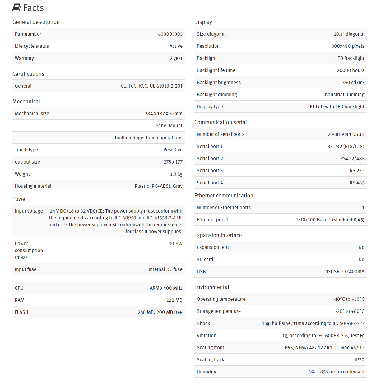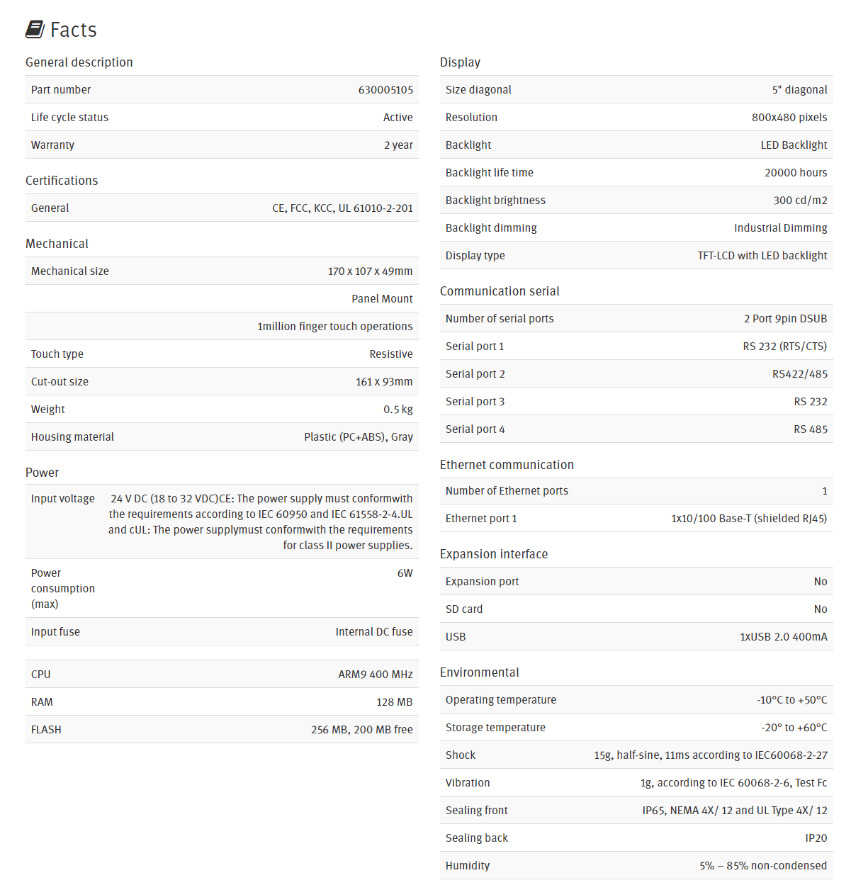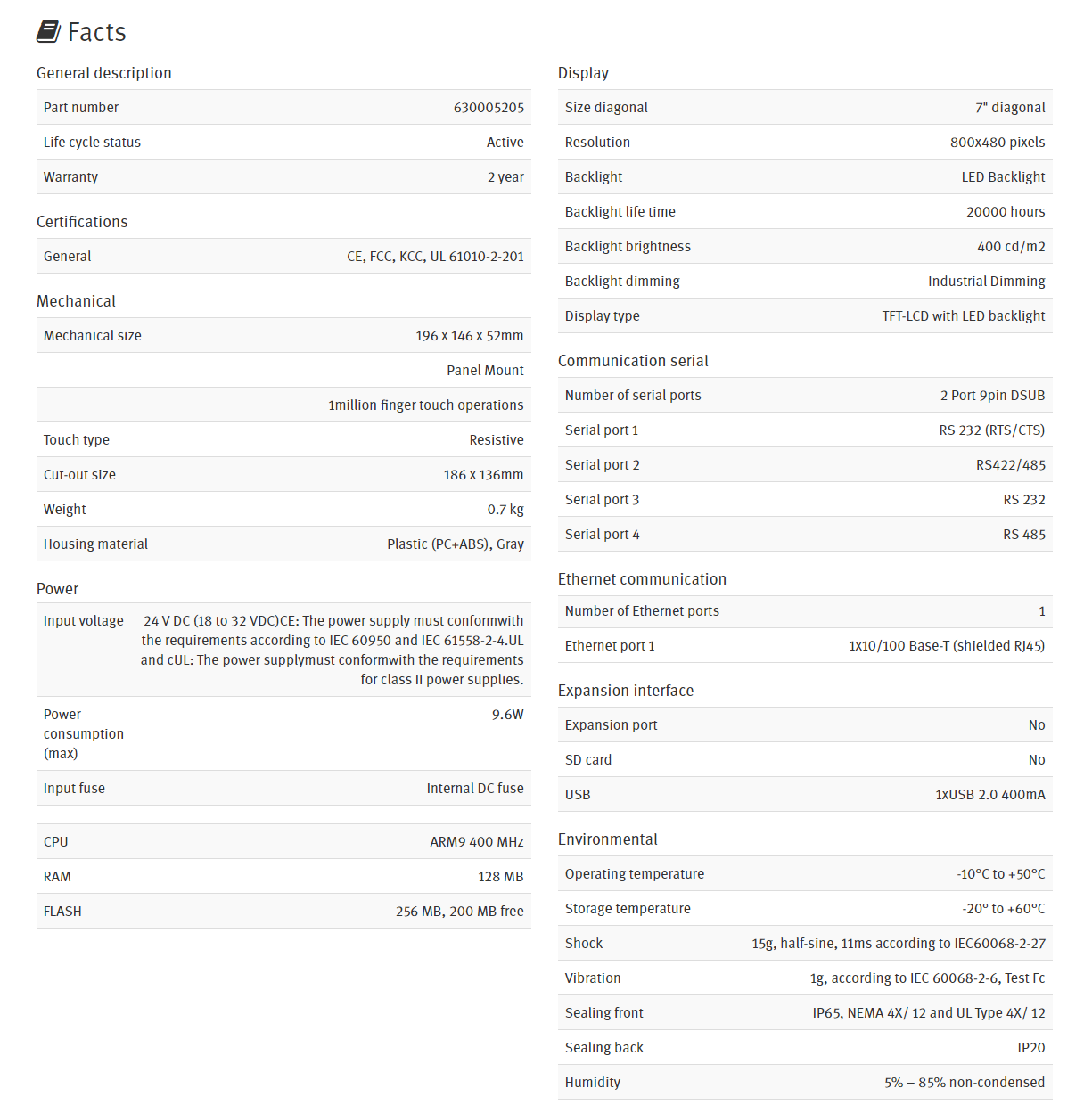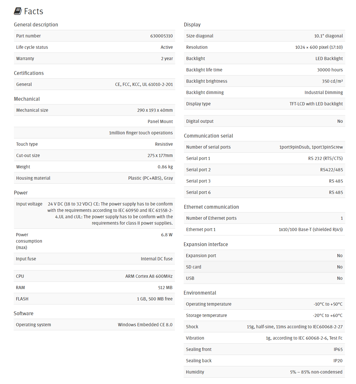 - 1 × Ethernet, 4 × serial, 1 × USB as standard